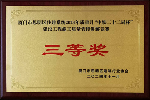 厦门市思明区住建系统2024年质量月“中铁二十二局杯”建设工程施工质量管控讲解竞赛三等奖