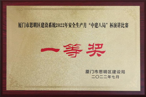 厦门市思明区建设系统2022年安全生产月“中建八局”杯演讲比赛“一等奖”